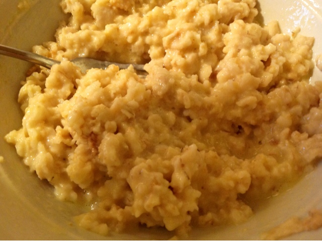 Approximately 1/2-3/4 cup leftover basic oatmeal (this is not an exact science)